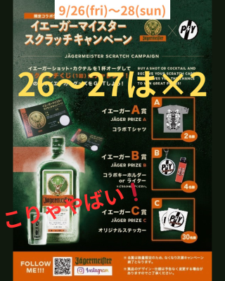 なんと❗️イェーガーマイスターとPSYの限定コラボグッズが当たるキャンペーンの開催です😉